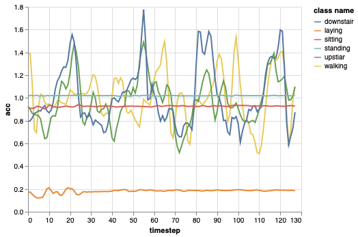 根據數據集的創建者,信號以50Hz的採樣率記錄下來,並作為每個維度的時間序列存儲,因此獲得了6個不同的信號(3個來自加速度計,其他3個來自陀螺儀)。